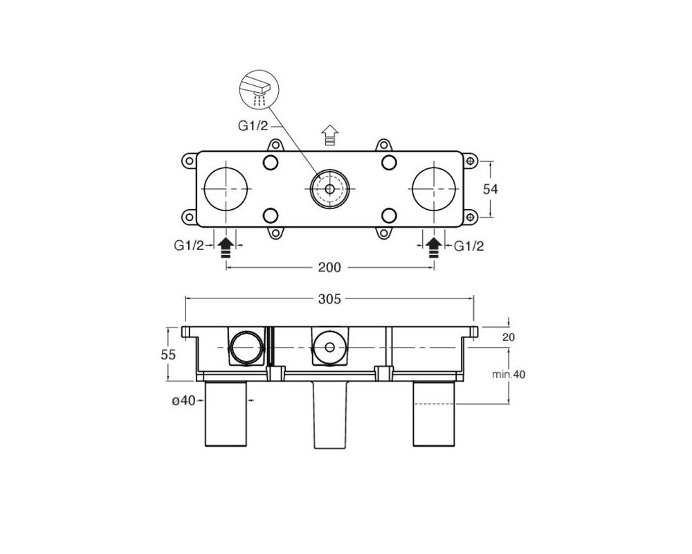 Kit de empotrar para mezclador bimando para lavabo, de pared, mandos laterales, con parte mecánica