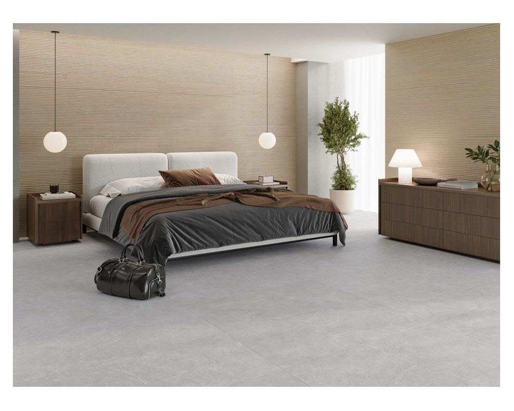 Revestimiento de madera porcelánica con relieve.
